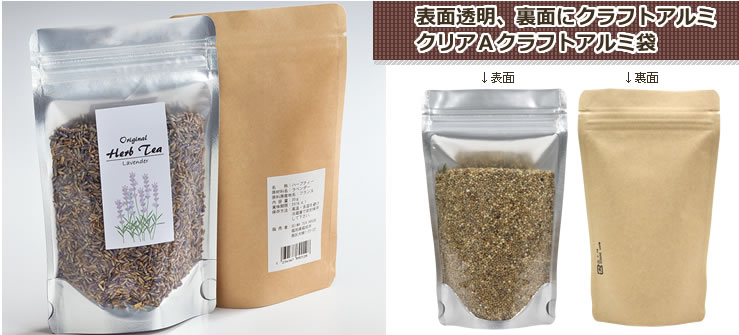 <表面が透明、裏面がクラフトアルミのクリアAクラフトアルミ袋>