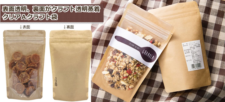 <表面、透明NY、裏面がクラフト透明のクリアAクラフト袋>
