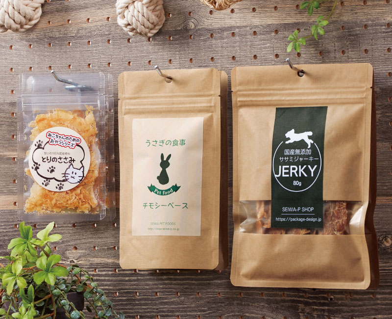ペットフード用のオリジナルパッケージの作成方法、バリエーション豊富なチャック袋、パッケージデザインテンプレートをご紹介します。